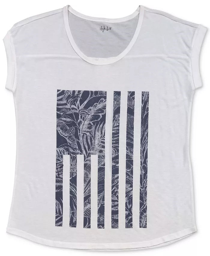 Camiseta feminina com estampa de bandeira tropical Style & Co, azul-marinho, tamanho grande