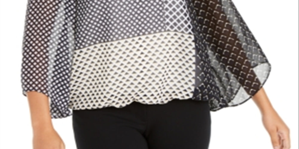 Blusa feminina Alfani com estampa de manga de anjo, preta, vários tamanhos, pequena P