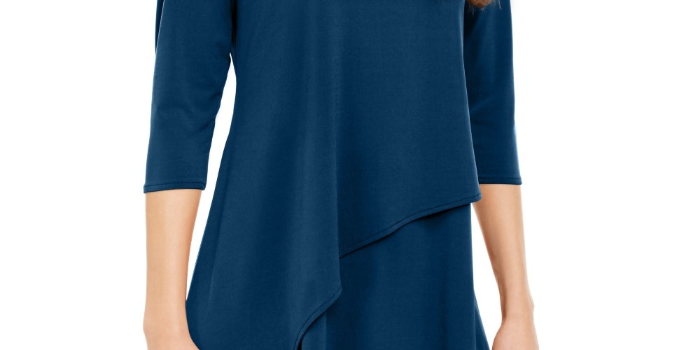Blusa feminina Alfani com bainha assimétrica e manga 3/4, verde, tamanho médio
