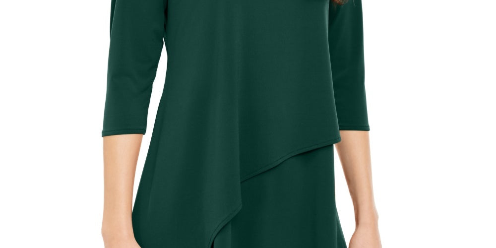 Aprox. 26 de comprimento | Decote assimétrico | Bainha assimétrica em camadas | Mangas 3/4