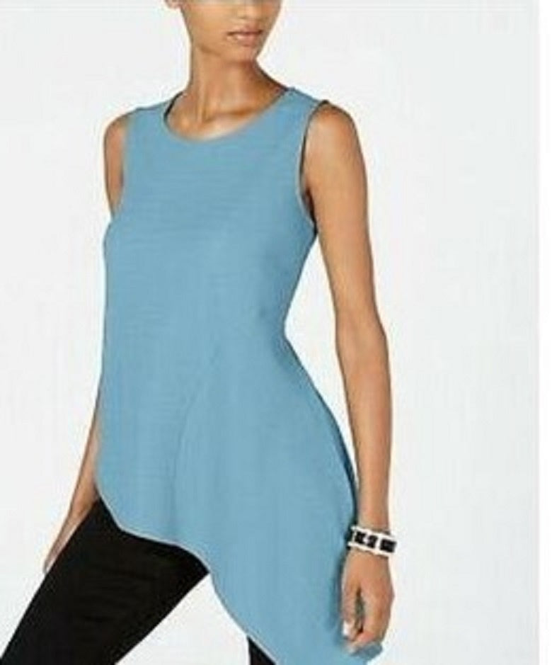 Blusa feminina Alfani com bainha assimétrica, azul, tamanho pequeno