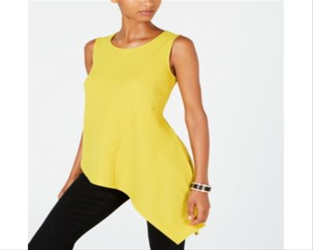 Abandone a simetria. O top curto sem mangas da Alfani traz uma bainha assimétrica dramática ao seu look. | Atinge o quadril; aprox. 61 cm de comprimento | Projetado para se ajustar e valorizar pessoas de 1,62 m ou menos | Decote redondo | Bainha assimétrica | Poliéster/elastano | Lavável à máquina | Importado