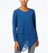 Blusa feminina Alfani assimétrica em camadas, azul, tamanho pequeno, médio