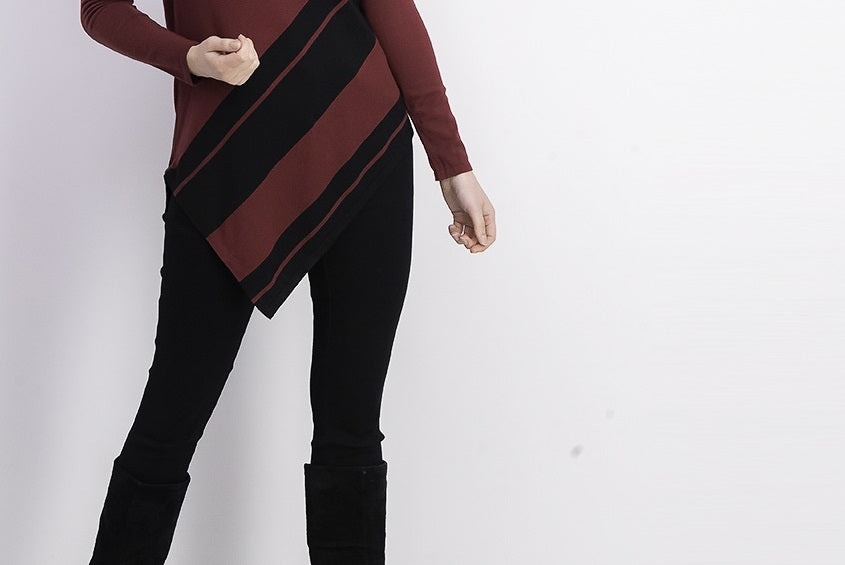 Suéter listrado assimétrico feminino Alfani Malbec / Preto tamanho médio