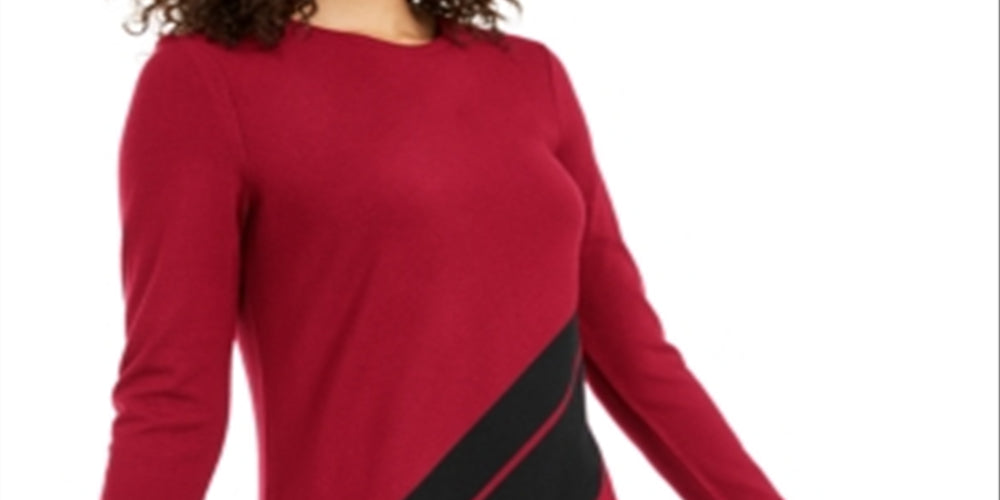 blocos de cores e bainha assimétrica drapeada adicionam um toque e dimensão únicos a este suéter alfani de manga comprida