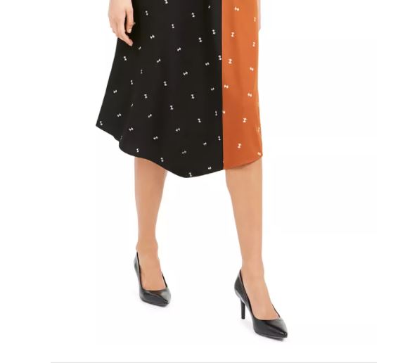 Saia feminina Alfani com estampa dupla assimétrica, marrom, tamanho 10