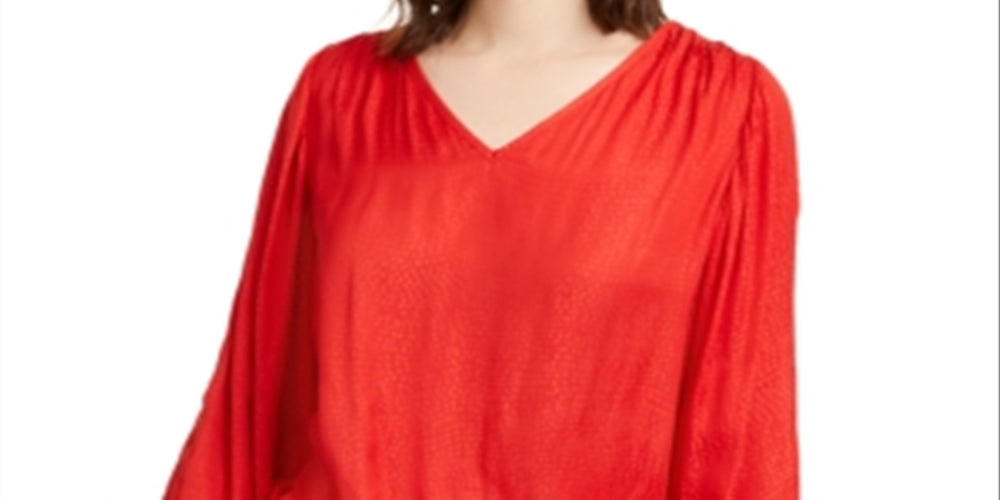 O top blouson da Alfani apresenta bainha com faixas e decote em V que oferece um visual descontraído e um estilo arejado em qualquer dia da semana