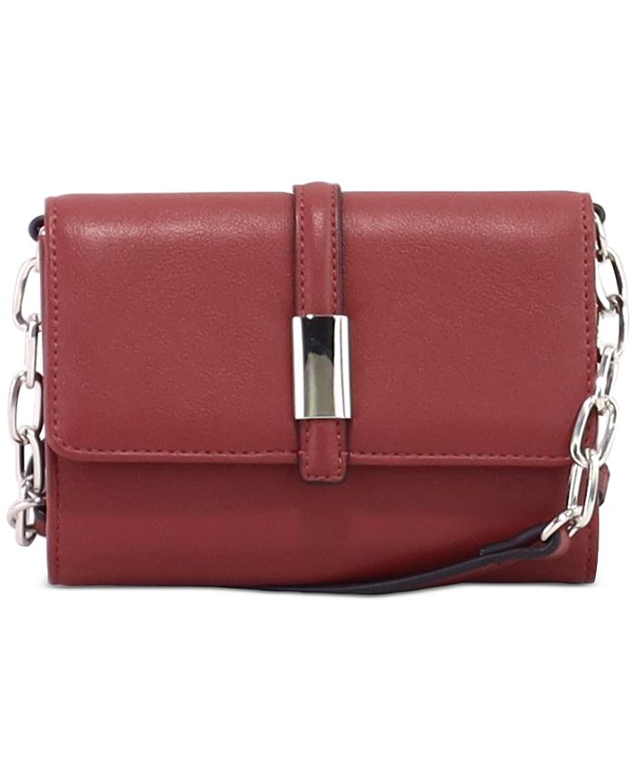 7L x 5A x 1-1/4P; peso aproximado de 0,73 lbs | Alça transversal ajustável e removível de 25-1/2L | Fecho de aba magnética | Ferragens externas prateadas e 1 bolso traseiro com zíper | 1 bolso interno com zíper e 5 bolsos para cartão de crédito | Serve para até um iPhone 13 Pro Max | A bolsa se transforma de transversal em carteira removendo a alça