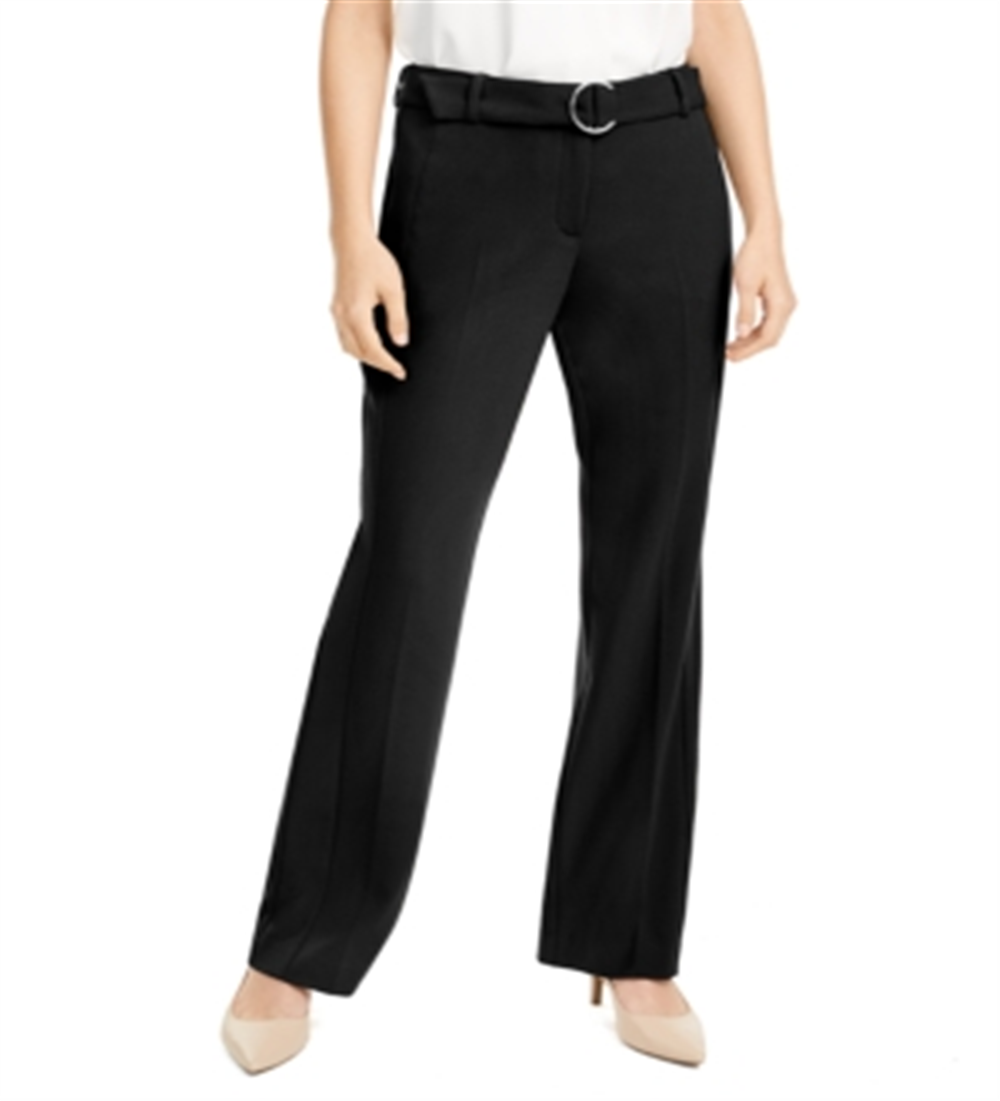 Alfani eleva o seu estilo de escritório com estas calças retas | com cinto de argola em D para dar um toque especial ao visual. | Aprox. entrepernas; 32 | Cós médio; frente; aprox. 10; costas; aprox. 16-3/4; perna reta | Braguilha com zíper e fecho de fixação; cinto de argola em D