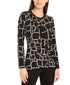 Blusa feminina Alfani com estampa frontal e pregas, preta, tamanho médio