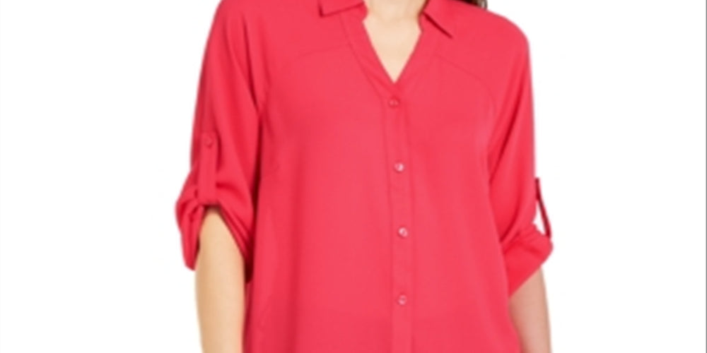 Cor; Rosa Tipo de tamanho; Tamanho regular (feminino); Estilo de manga M; Tipo de manga 3/4; Estilo de blusa; Camisa de botões Ocasião; Material de carreira; 100% poliéster