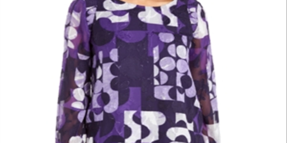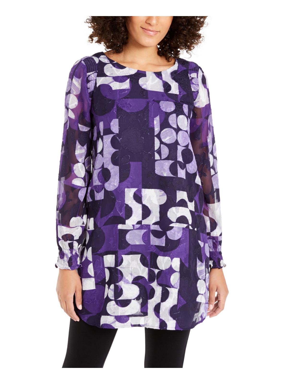 Blusa túnica Alfani Burnout Smocked feminina, roxa, tamanho XS