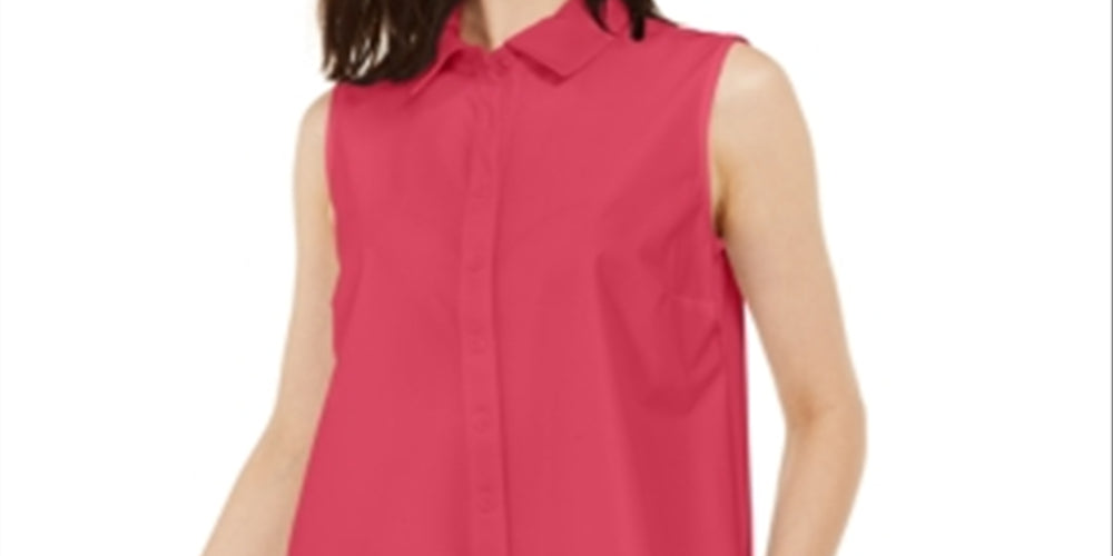 Blusa feminina Alfani com botões e sem mangas, tamanho médio, vermelha