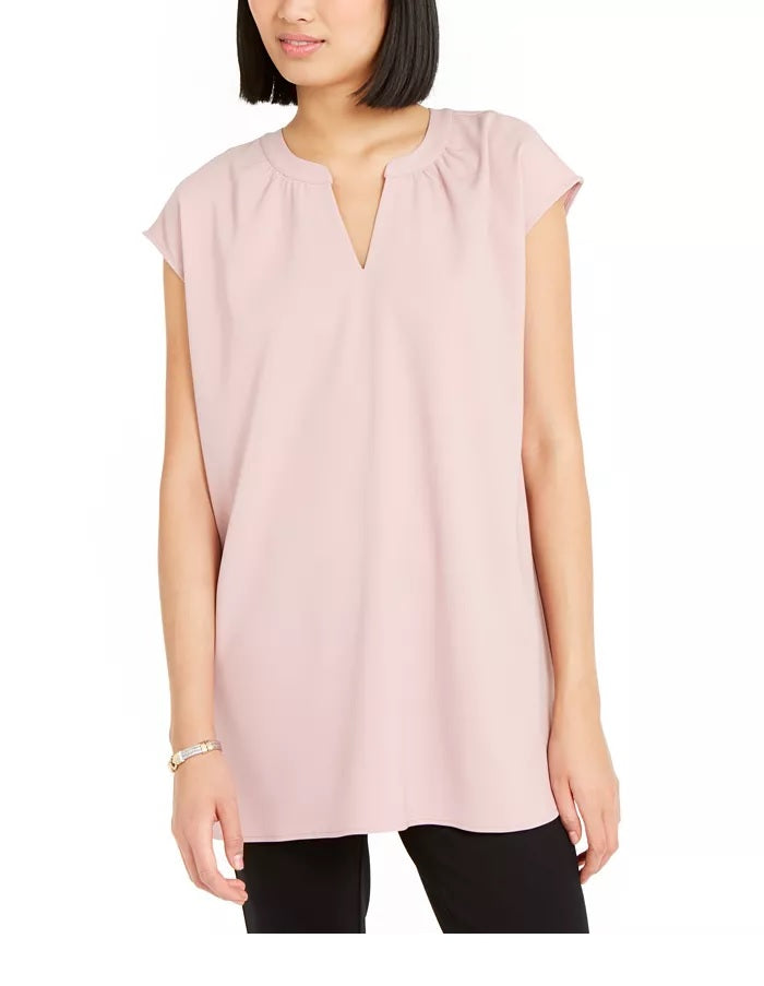 Aproximadamente 32" de comprimento | Decote aberto | Mangas curtas | Poliéster/elastano | Lavar à máquina