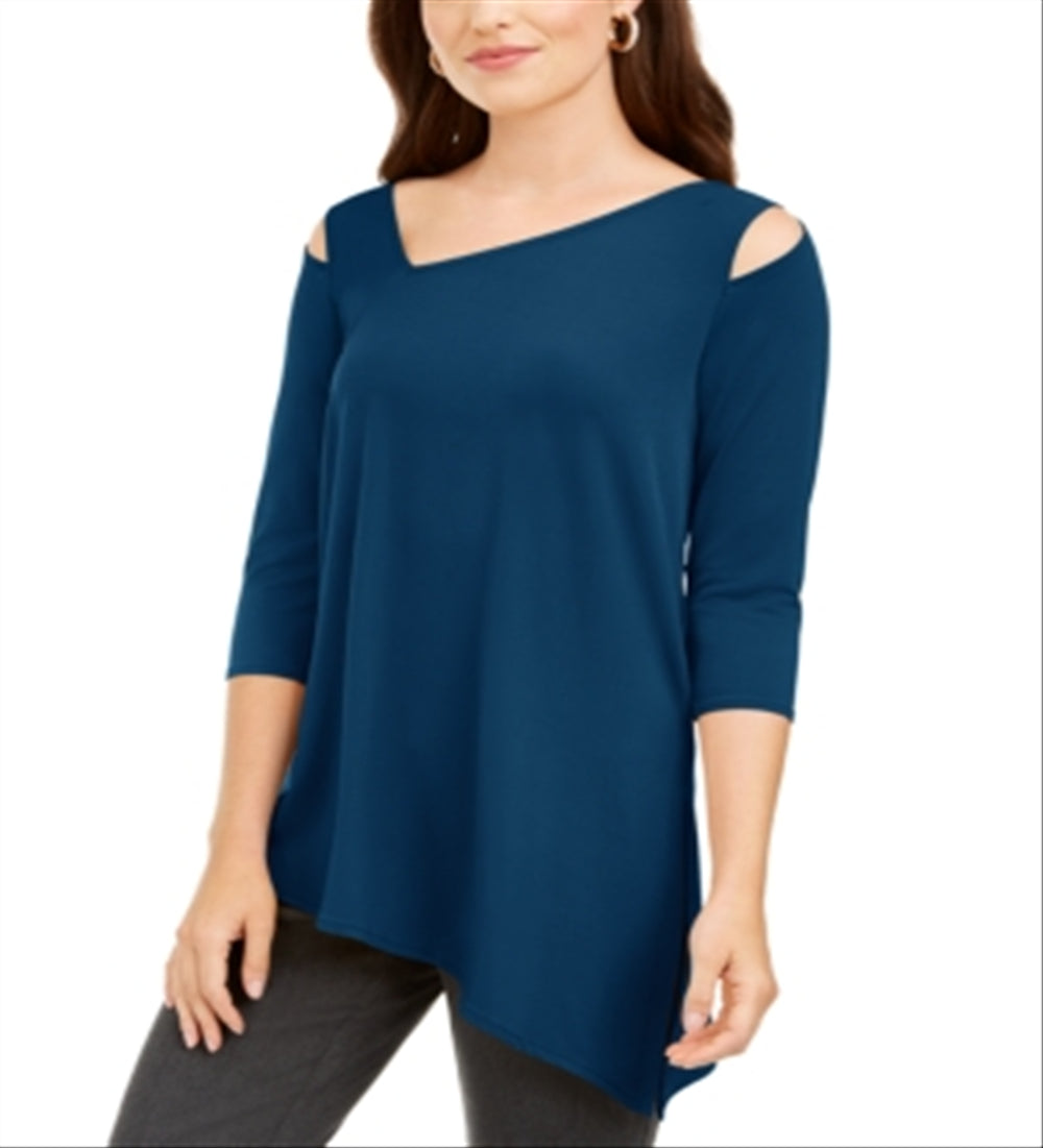 Alfani mantém o interesse com um motivo assimétrico neste top chique com mangas 3/4 e recortes nos ombros