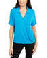 Blusa de malha com gola Alfani feminina, azul, tamanho PL