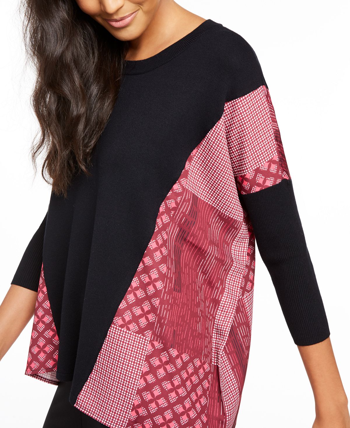 Os acabamentos contrastantes nas laterais adicionam um detalhe chamativo ao suéter de gola redonda da Alfani, trazendo um toque contemporâneo ao estilo de manga 3/4. | Atinge os quadris; aprox. 25-7/8 de comprimento | Decote redondo | Painéis contrastantes nas laterais | Mangas 3/4