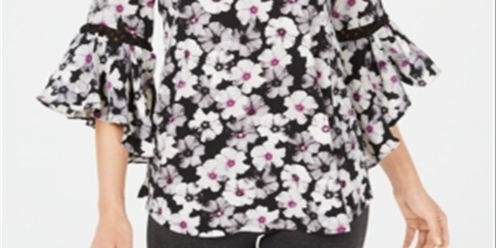 Blusa feminina Alfani com cordão embutido, preta, tamanho pequeno G