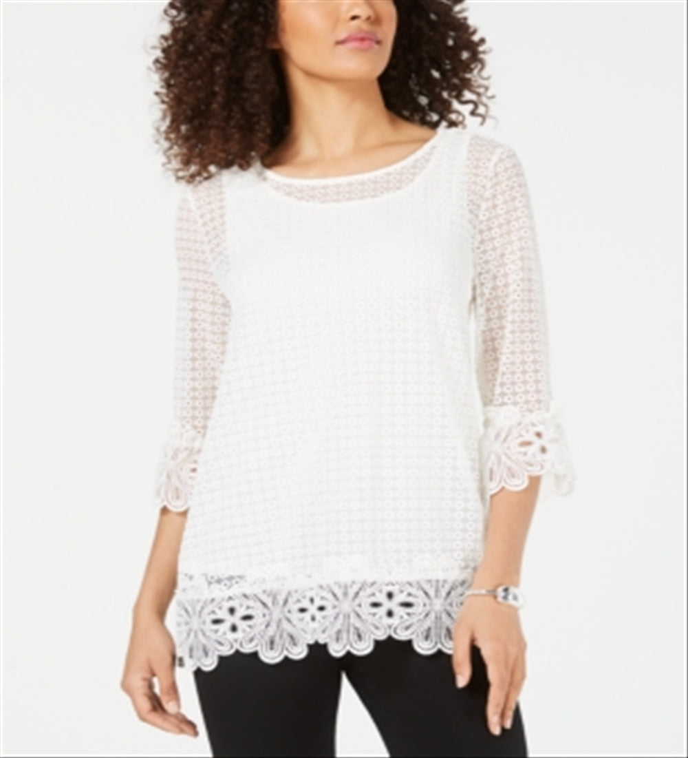 Top de renda de crochê feminino Alfani, branco, tamanho pequeno médio