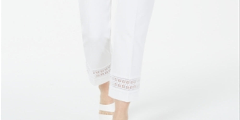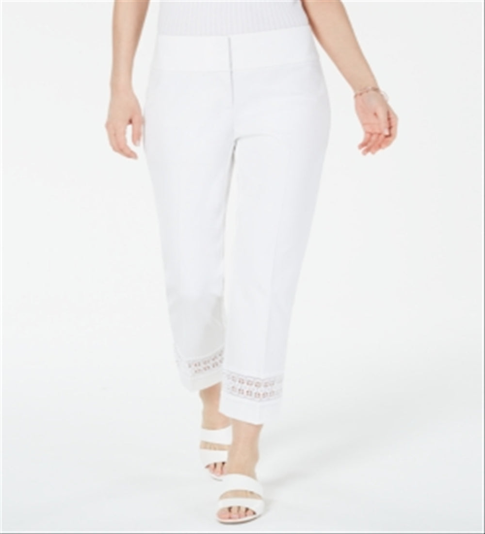 Calça feminina Alfani Cropped com detalhe de renda, branca, tamanho 8 Petite