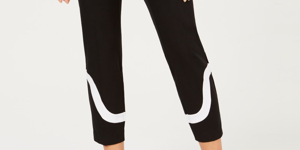 Costura interna aprox.: 26" | Altura frontal: aprox. 10-1/8"; Altura traseira: aprox. 16-1/4" | Fecho de zíper e botão na frente | Bolsos frontais fora da costura; bolsos falsos de debrum atrás; listra no punho