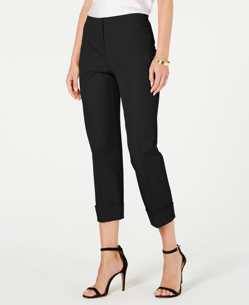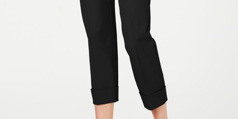 Calça Alfani Feminina com Punhos e Tornozelo Preta Tamanho 0 Petite