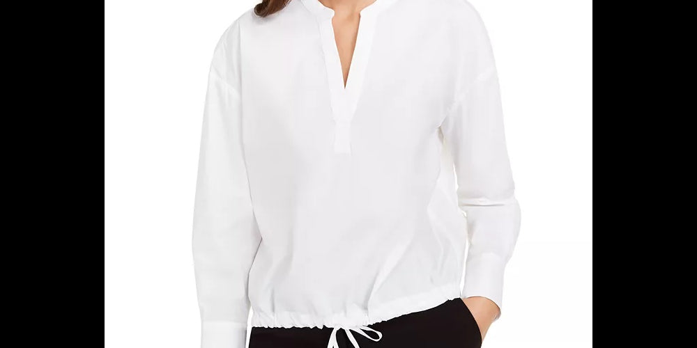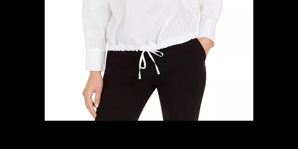 Blusa feminina Alfani com cordão na bainha, branca, tamanho X-S