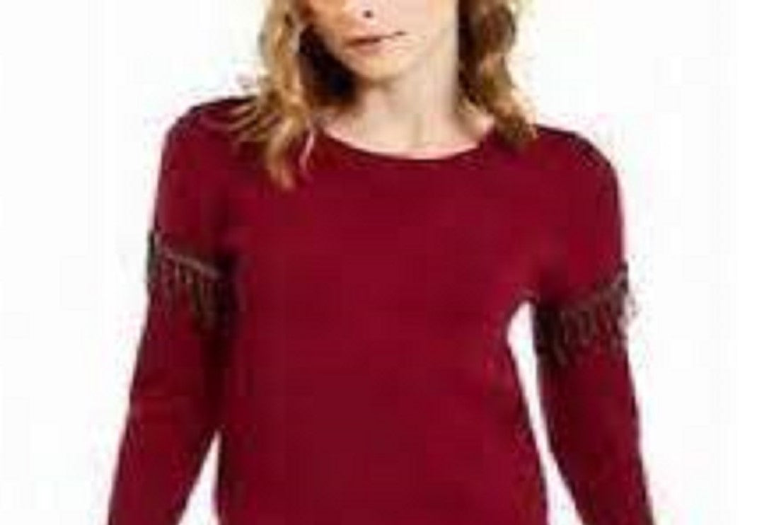 Suéter Alfani Feminino com Franjas Embelezadas, Vinho, Tamanho Grande