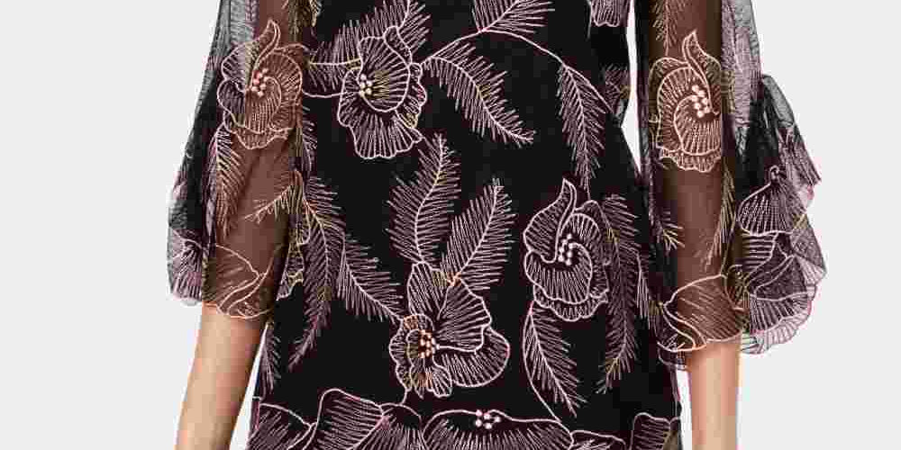 Decote redondo | Sobreposição com estampa floral | Mangas ilusão com babados nos punhos