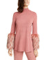 Suéter feminino Alfani com punho de pele sintética e gola falsa, rosa, tamanho pequeno