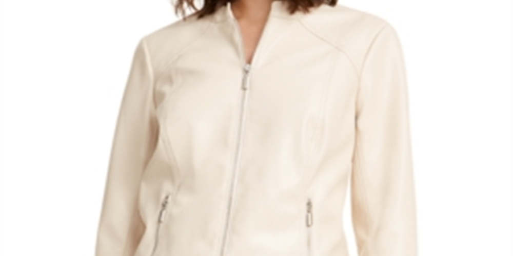 Jaqueta de couro sintético feminina Alfani, branca, tamanho G