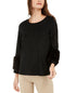 Blusa feminina Alfani de camurça sintética e pele sintética, preta, tamanho pequeno