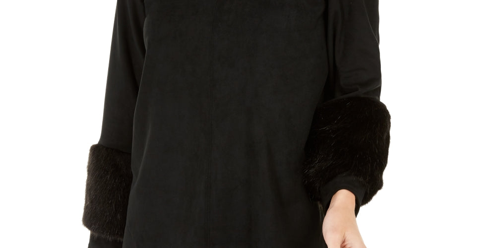 Aproximadamente 25-3/8 de comprimento | Decote redondo | Textura de camurça sintética | Mangas 3/4 com punhos de pele sintética