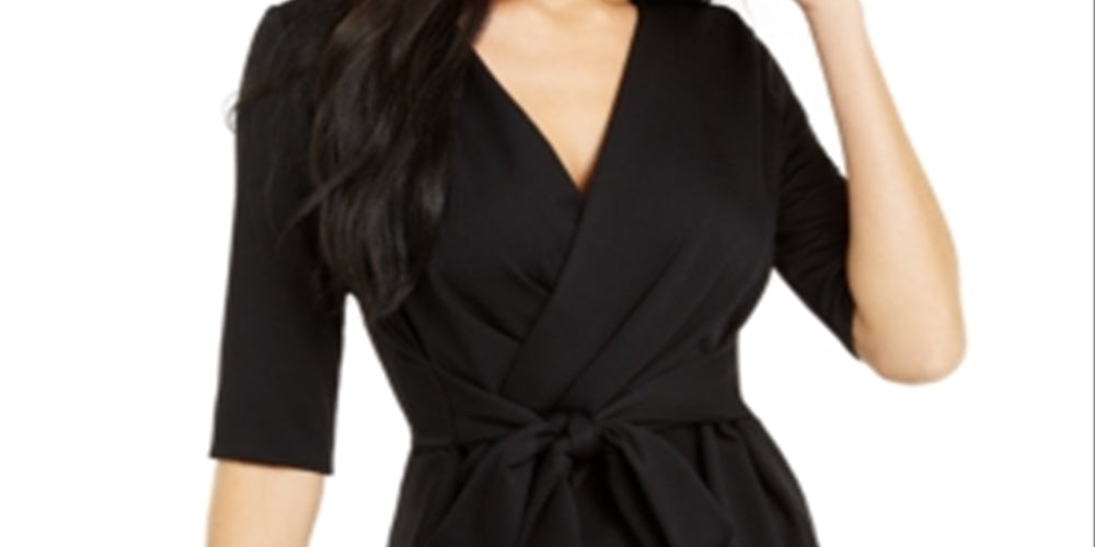 Blusa Alfani Feminina com Manga Cotovelo e Envoltório Falso, Preta, Tamanho Pequeno P