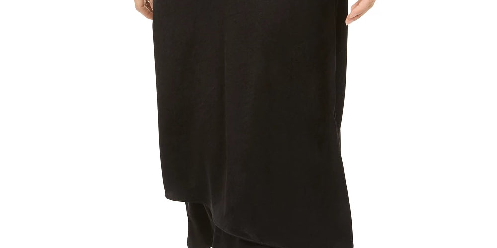 Aproximadamente 76 cm de comprimento; silhueta em A | Zíper invisível na lateral; fecho de colchete | Silhueta de falso envoltório | Sem forro | Poliéster