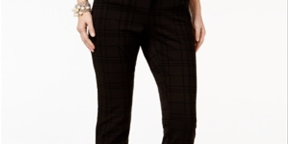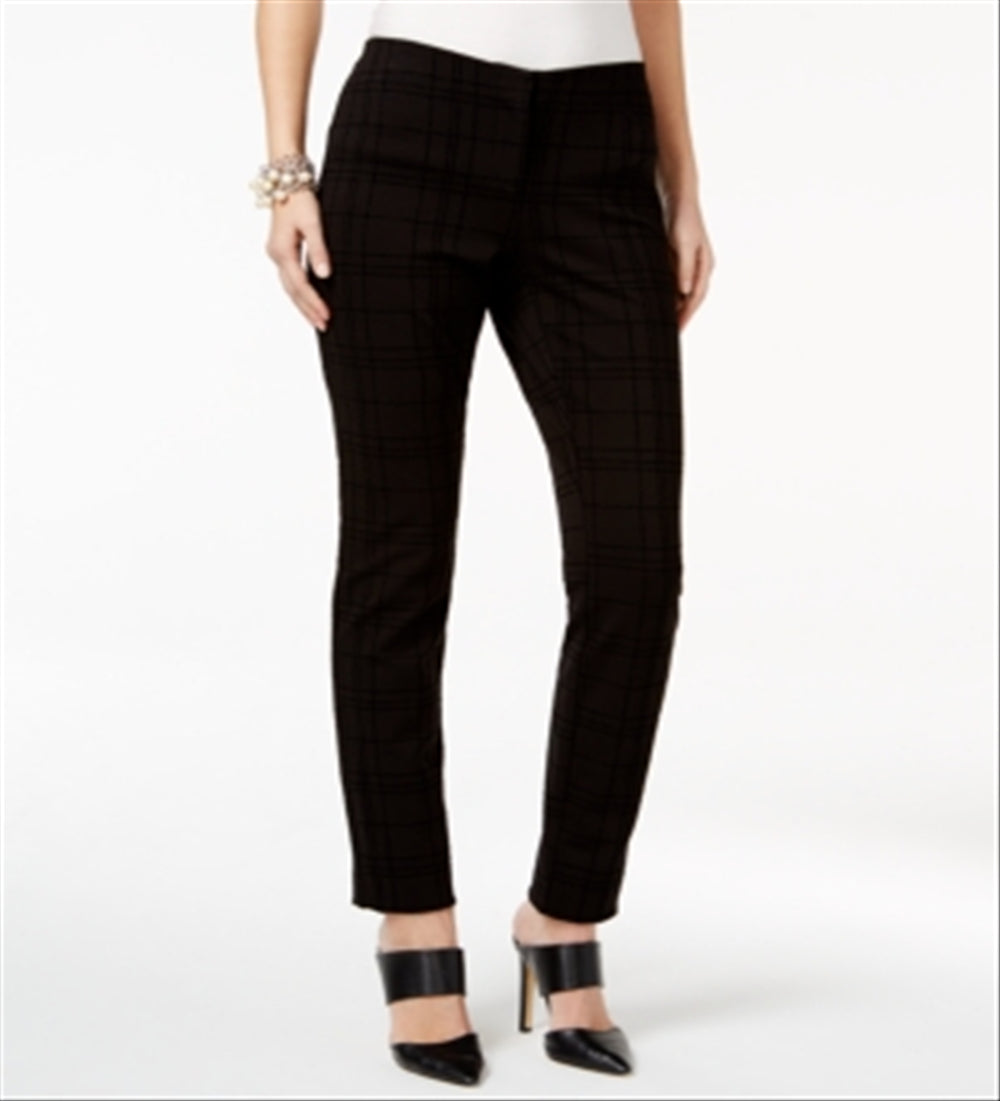 feito sob medida com cintura estilo Hollywood | as calças skinny petite da alfani têm um acabamento elegante com um sofisticado acabamento xadrez flocado