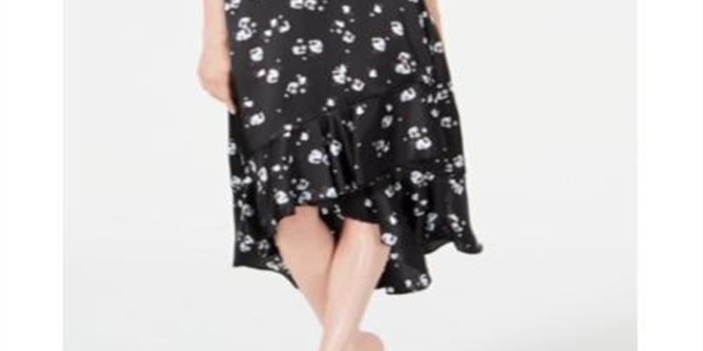 Saia ALFANI Floral Feminina Abaixo do Joelho Hi-Lo Preta Tamanho 8