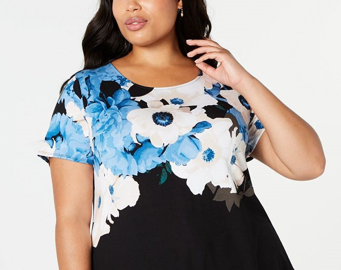Blusa casual feminina Alfani com decote em joia floral, azul, tamanho 0X