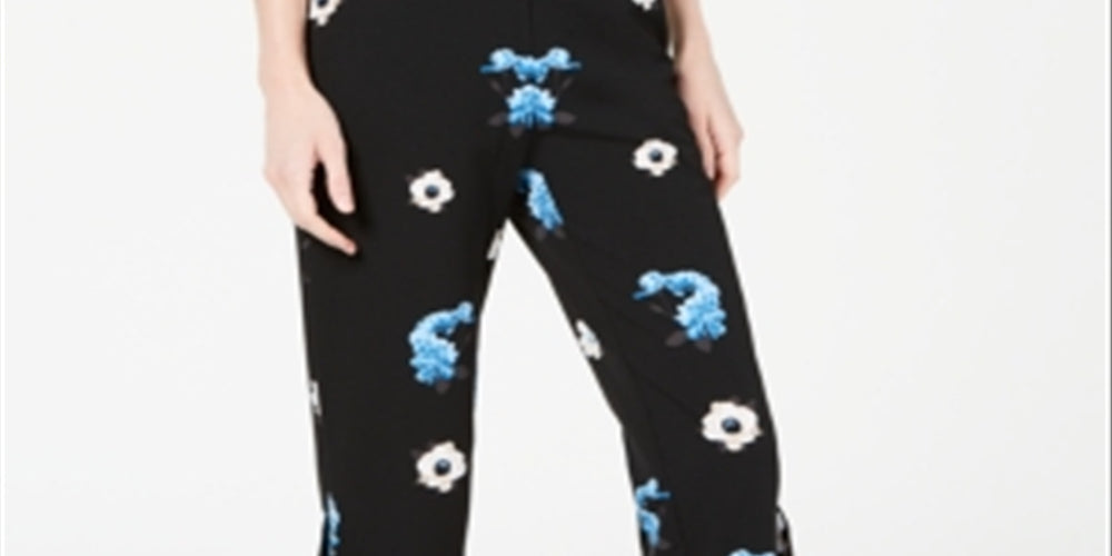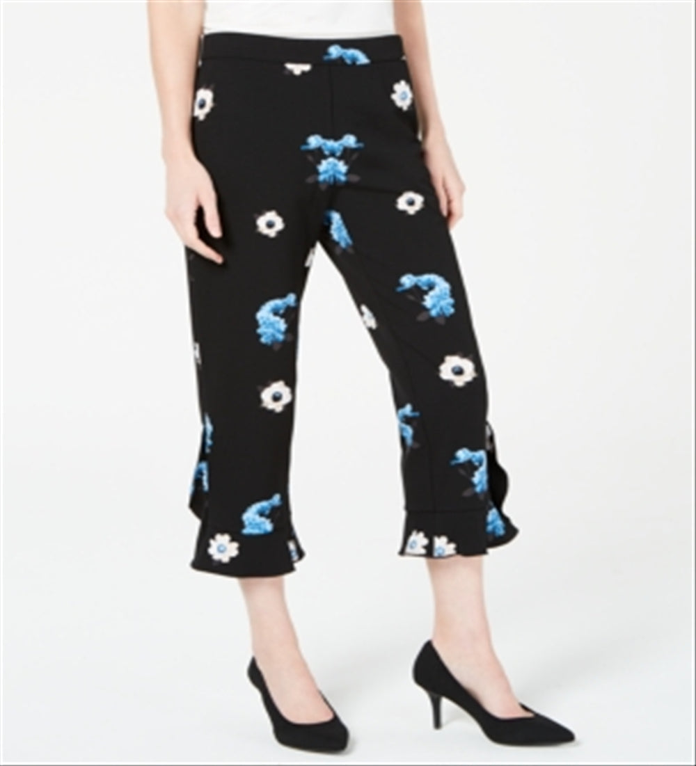 uma estampa floral e babados na bainha adicionam capricho e diversão a essas calças de tornozelo da alfani