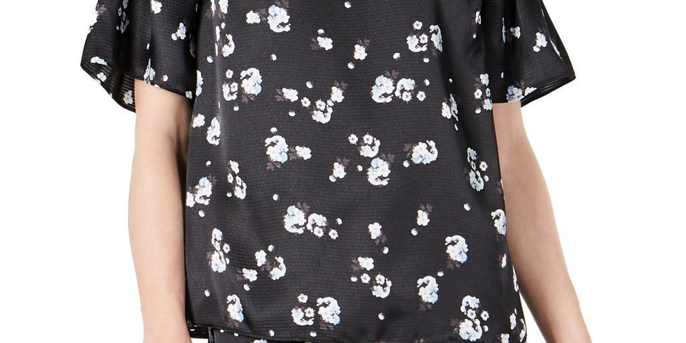 Blusa Alfani Feminina de Cetim com Estampa Floral e Ombros Smocked - Preto Moderno e Ditsy Tamanho P