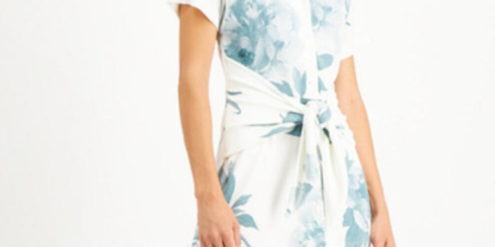 vestido-camisa feminino | estampa floral | midi com amarração frontal
