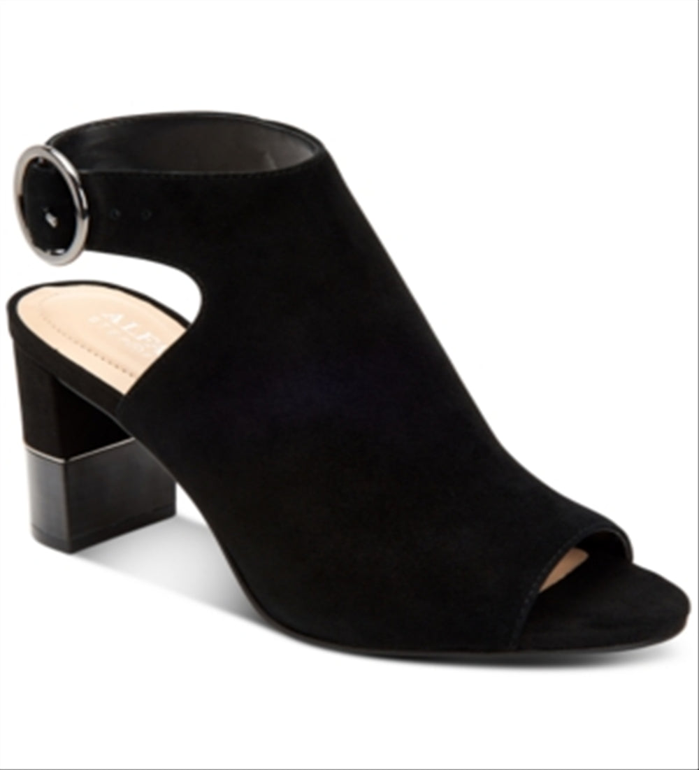 Sandália Alfani Feminina Floriss Camurça Peep Toe Casual com Tira no Tornozelo Preta Tamanho 8 M