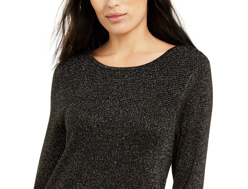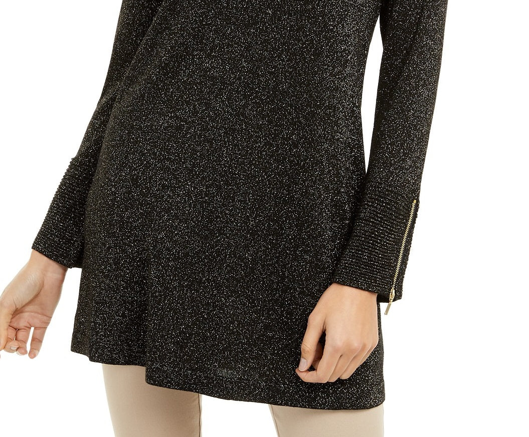 Suéter túnica feminino Alfani de malha brilhante, preto/dourado, tamanho G, extra grande