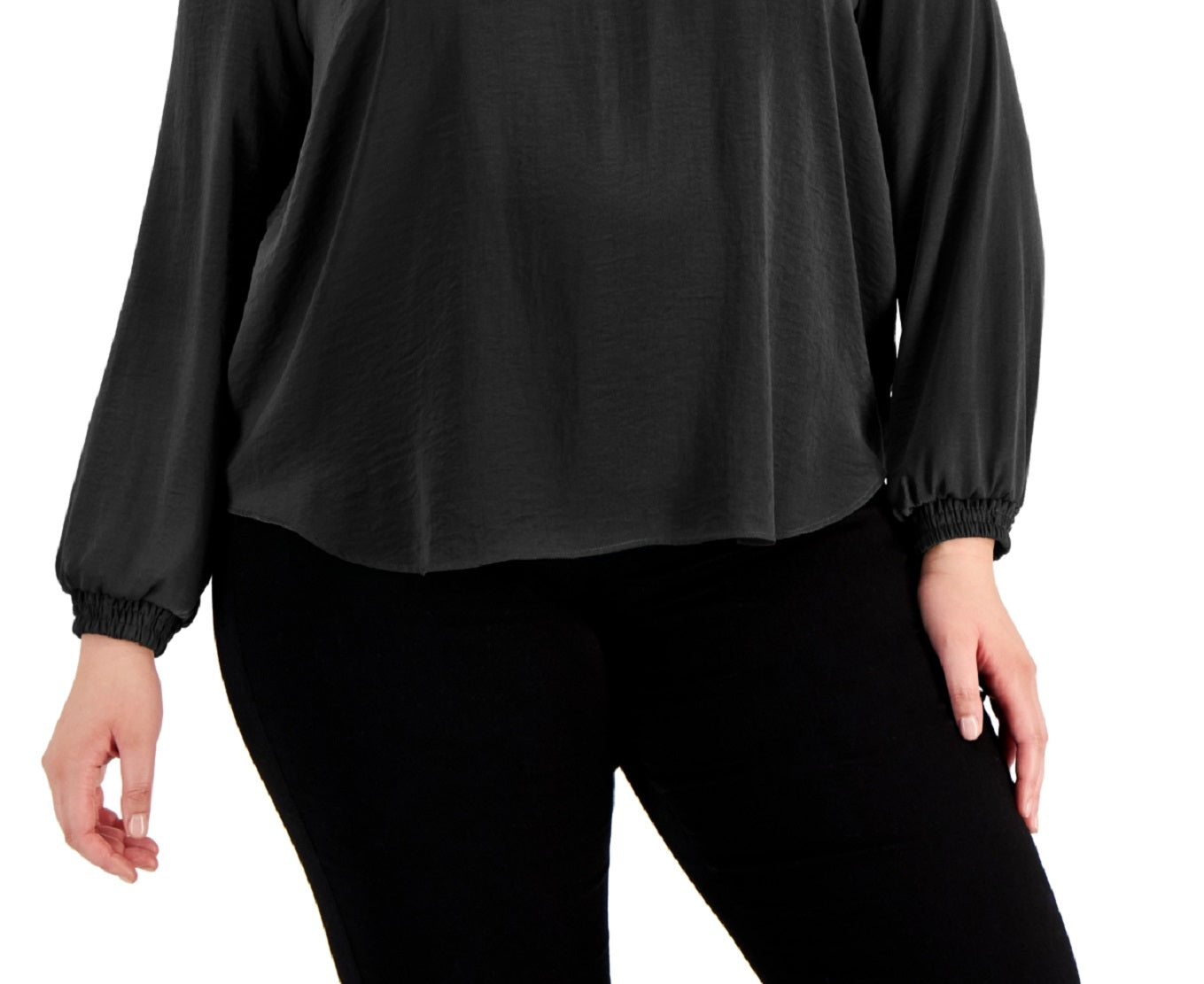 Uma bainha traseira mais longa e mangas bufantes elegantes definem este top plus size da Alfani|