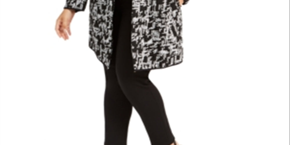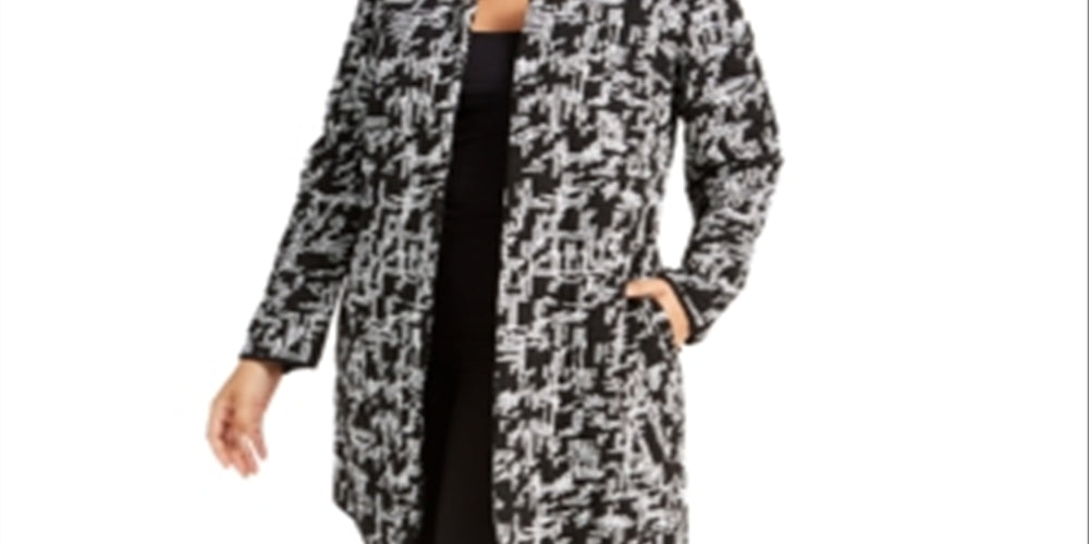 um lindo acabamento texturizado traz uma dimensão totalmente nova a esta sofisticada jaqueta plus size da alfani | finalizada com uma frente aberta para um estilo versátil