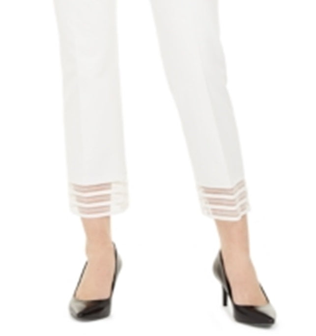 Calça feminina Alfani com bainha de renda e tornozelo, branca, tamanho 4, pequena