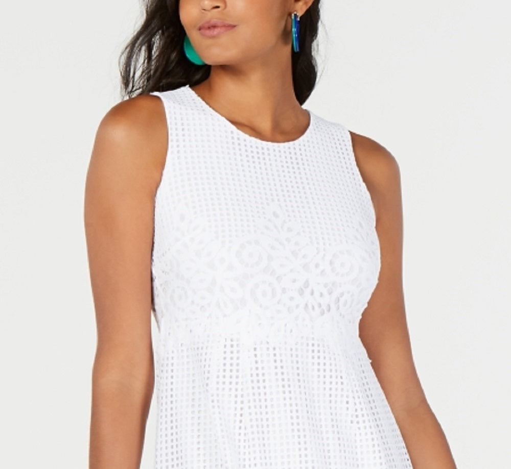 Vestido midi de renda feminino Alfani, branco, tamanho 14, pequeno