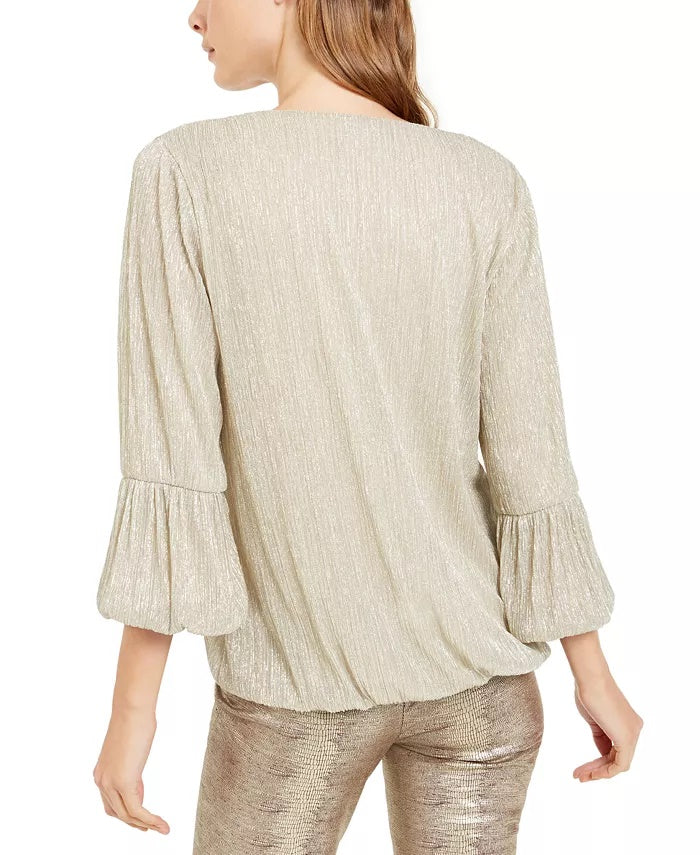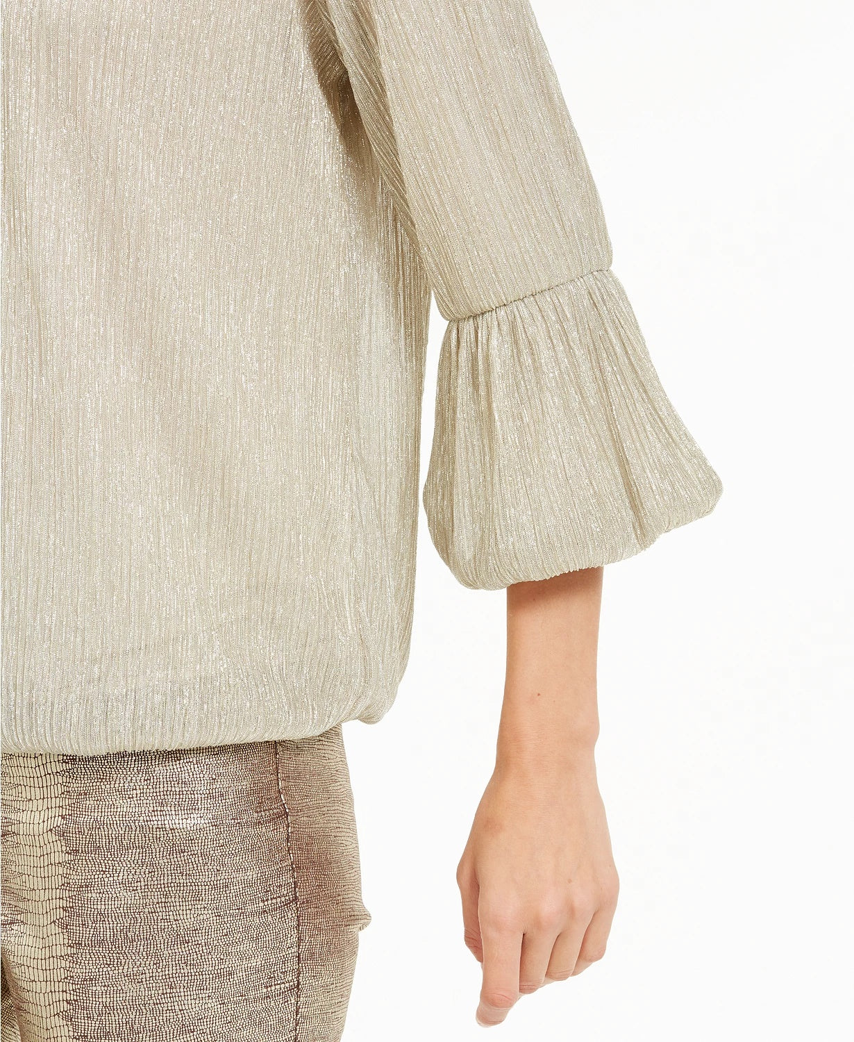 Aproximadamente 22-3/8" de comprimento | Projetado para se ajustar e valorizar pessoas de 1,62 m ou menos | Decote em V | Bainha com bolhas | Mangas 3/4 com punhos levemente alargados | Fios metálicos de poliéster/Lurex®; forro: nylon