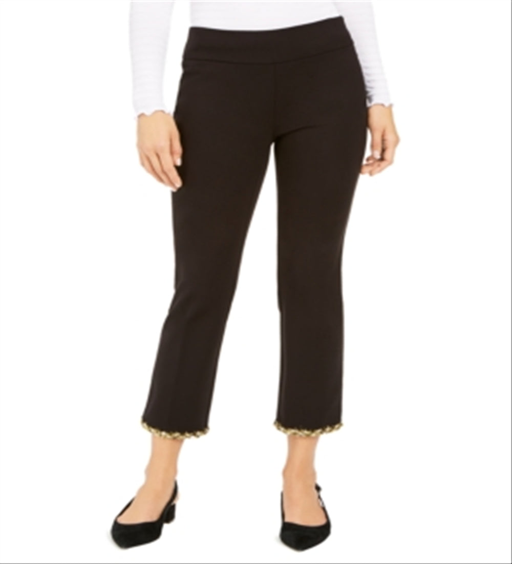 O acabamento metálico oferece um charme inesperado nas bainhas destas calças skinny de cano curto da Alfani