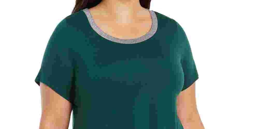 Top feminino Alfani com gola metálica, verde, tamanho 3X